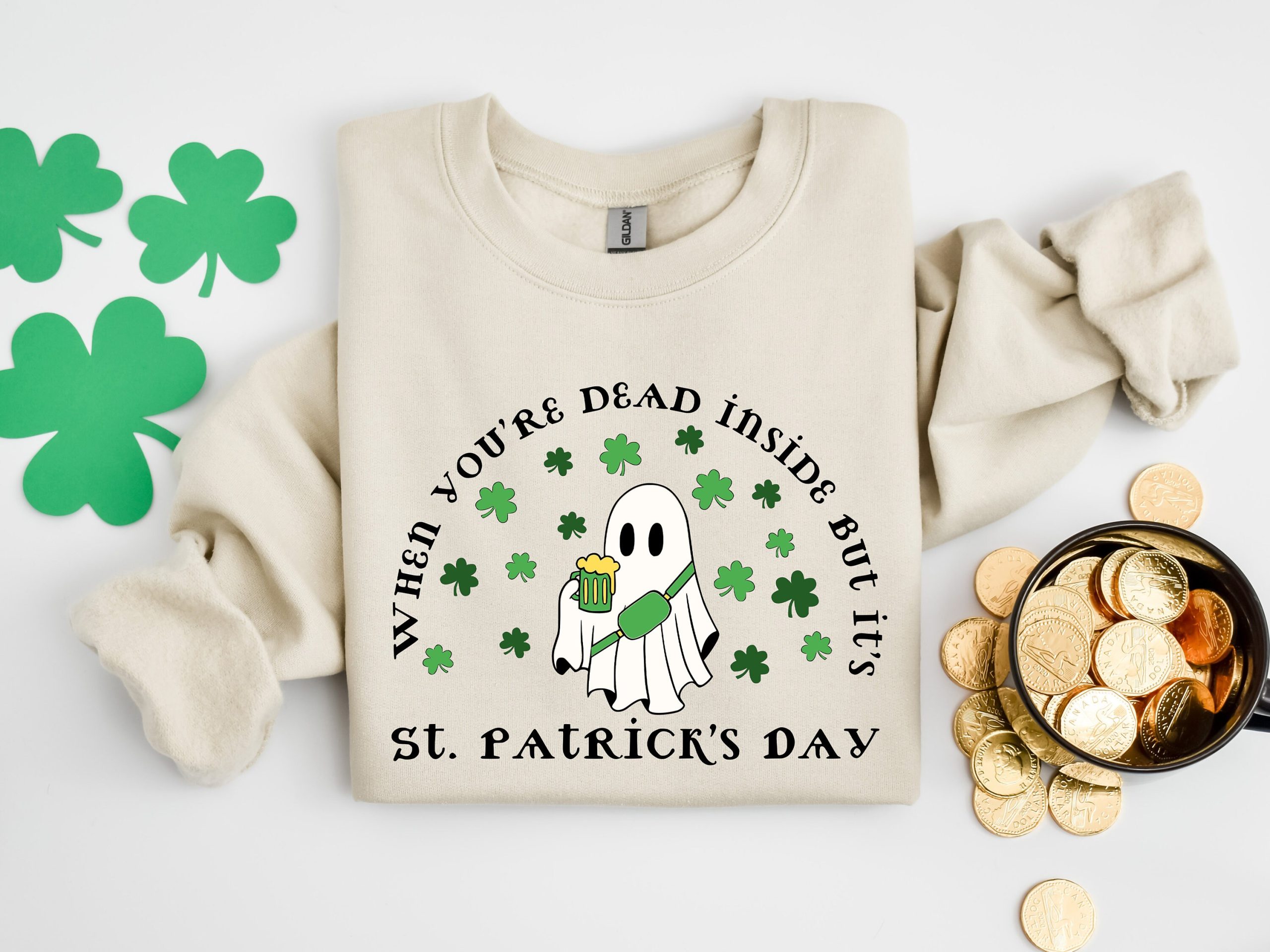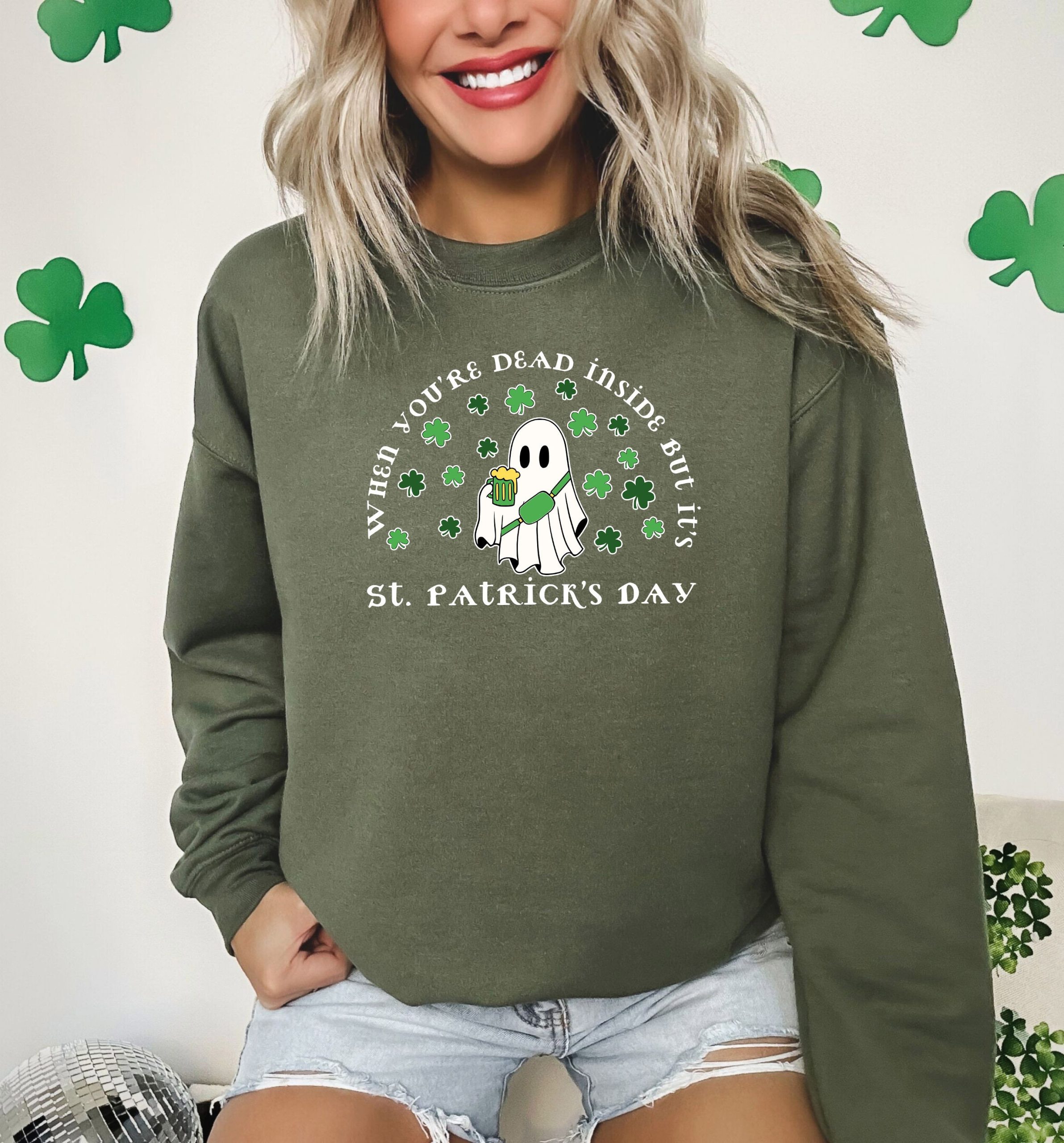 When You Are Dead Inside But It’ s St Patrick’s Day Sweashirt, St Patrick’s Day Tee, Funny Ghost Saint Patrick’s Shirt, St Patrick Drinking